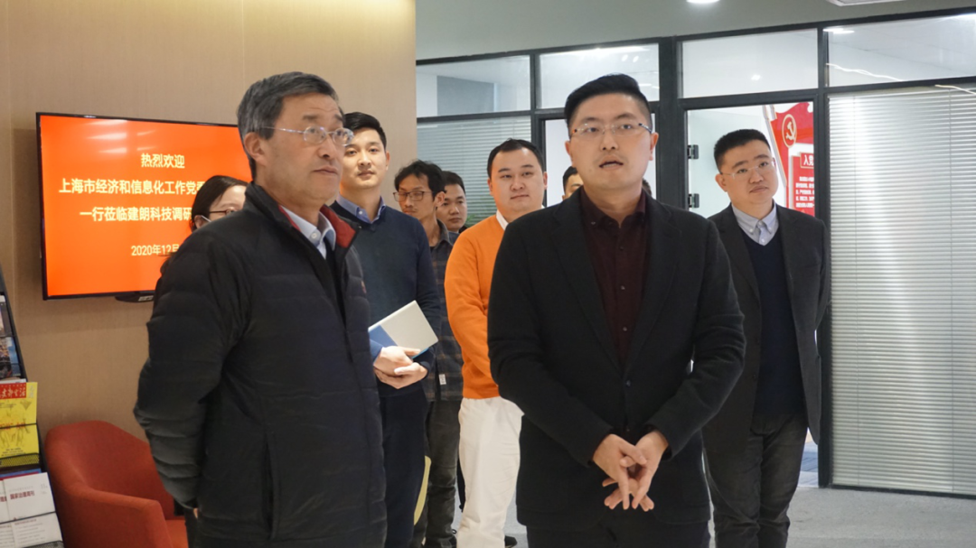 2020年12月29日,上海市經(jīng)濟(jì)和信息化黨工委書記陸曉春同志攜黨委辦公室主任李旭晨、信息化推進(jìn)處(大數(shù)據(jù)發(fā)展處)處長(zhǎng)錢曉、人工智能發(fā)展處處長(zhǎng)石伯明、組織處副處長(zhǎng)徐杉林、黨委辦公室副主任解文婧等一行蒞臨建朗科技開(kāi)展調(diào)研、考察。