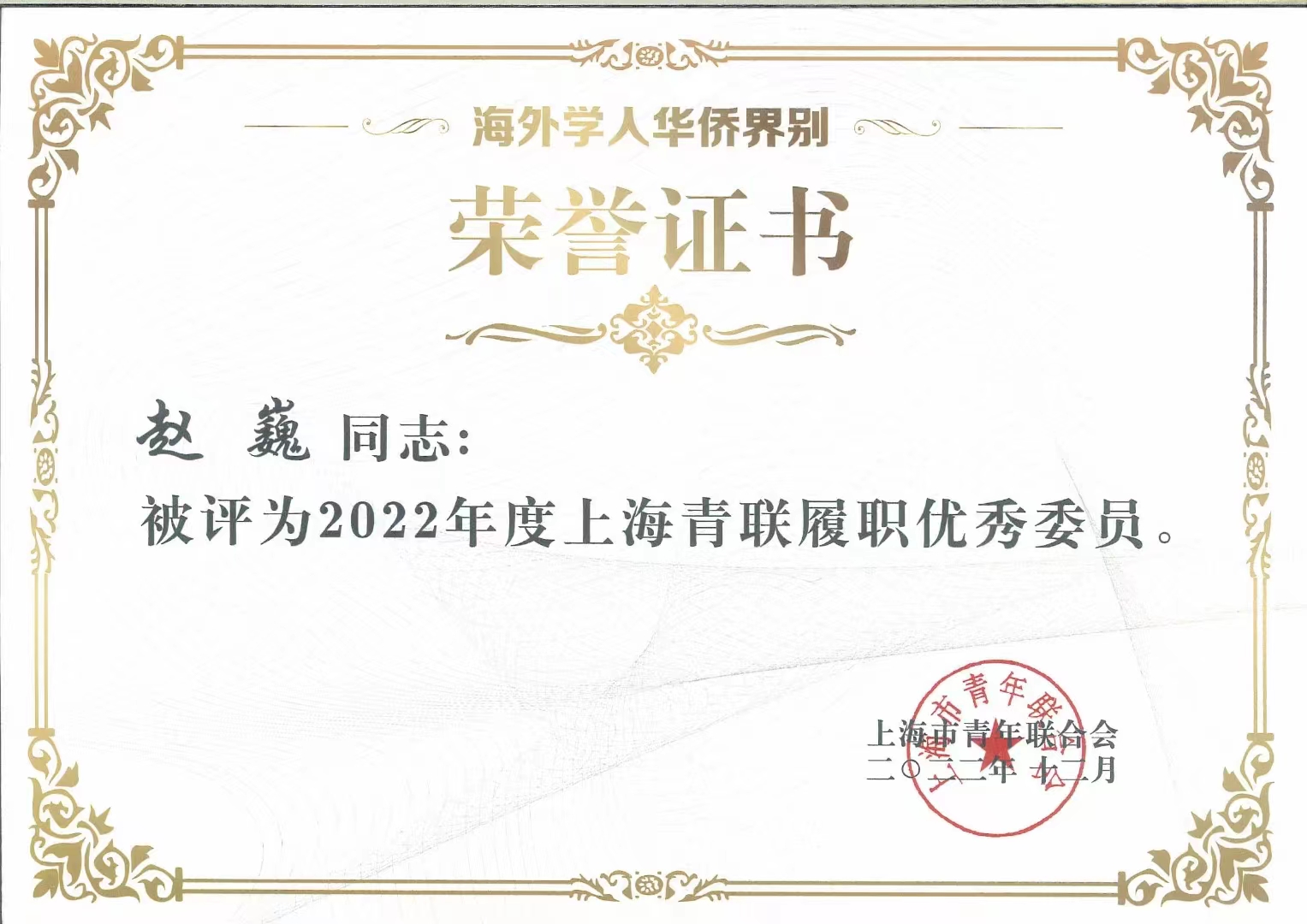 建朗科技董事長(zhǎng)趙巍受邀出席會(huì)議,并榮獲“2022年度上海青聯(lián)履職優(yōu)秀委員”榮譽(yù)稱(chēng)號(hào)。