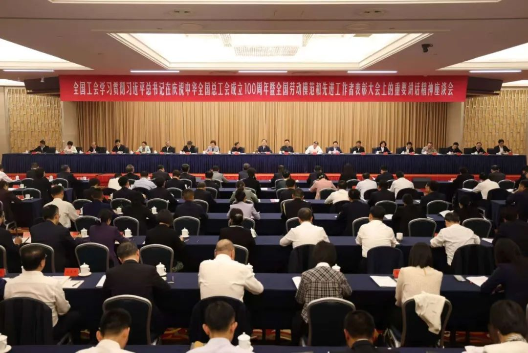 王東明在全國(guó)工會(huì)學(xué)習(xí)貫徹習(xí)近平總書記在慶祝中華全國(guó)總工會(huì)成立100周年暨全國(guó)勞動(dòng)模范和先進(jìn)工作者表彰大會(huì)上的重要講話精神座談會(huì)上指出